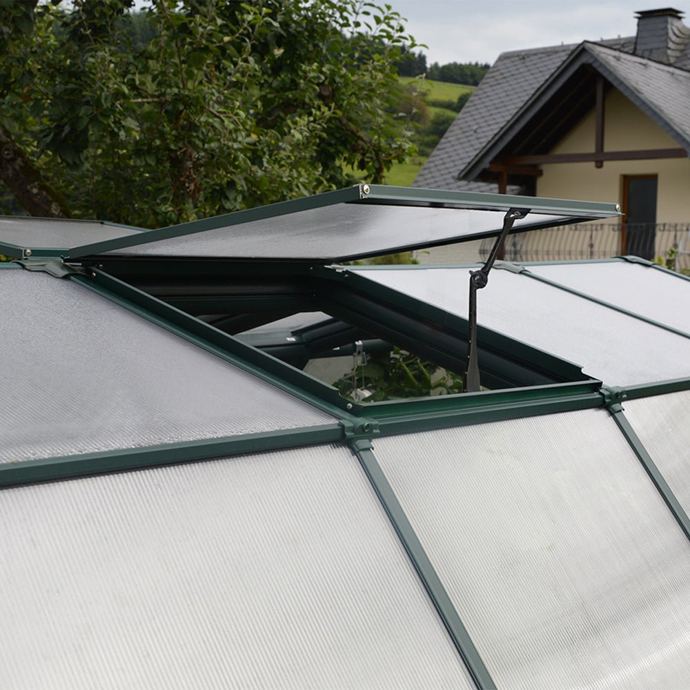 - Managing the climate inside your greenhouse is key to plant health and growth. That's why it's equipped with double doors and included roof vents to ensure excellent airflow and ventilation. Your plants will thrive in the perfect conditions, and you'll enjoy the ease of access and the peace of mind that comes with knowing your garden is in good hands.