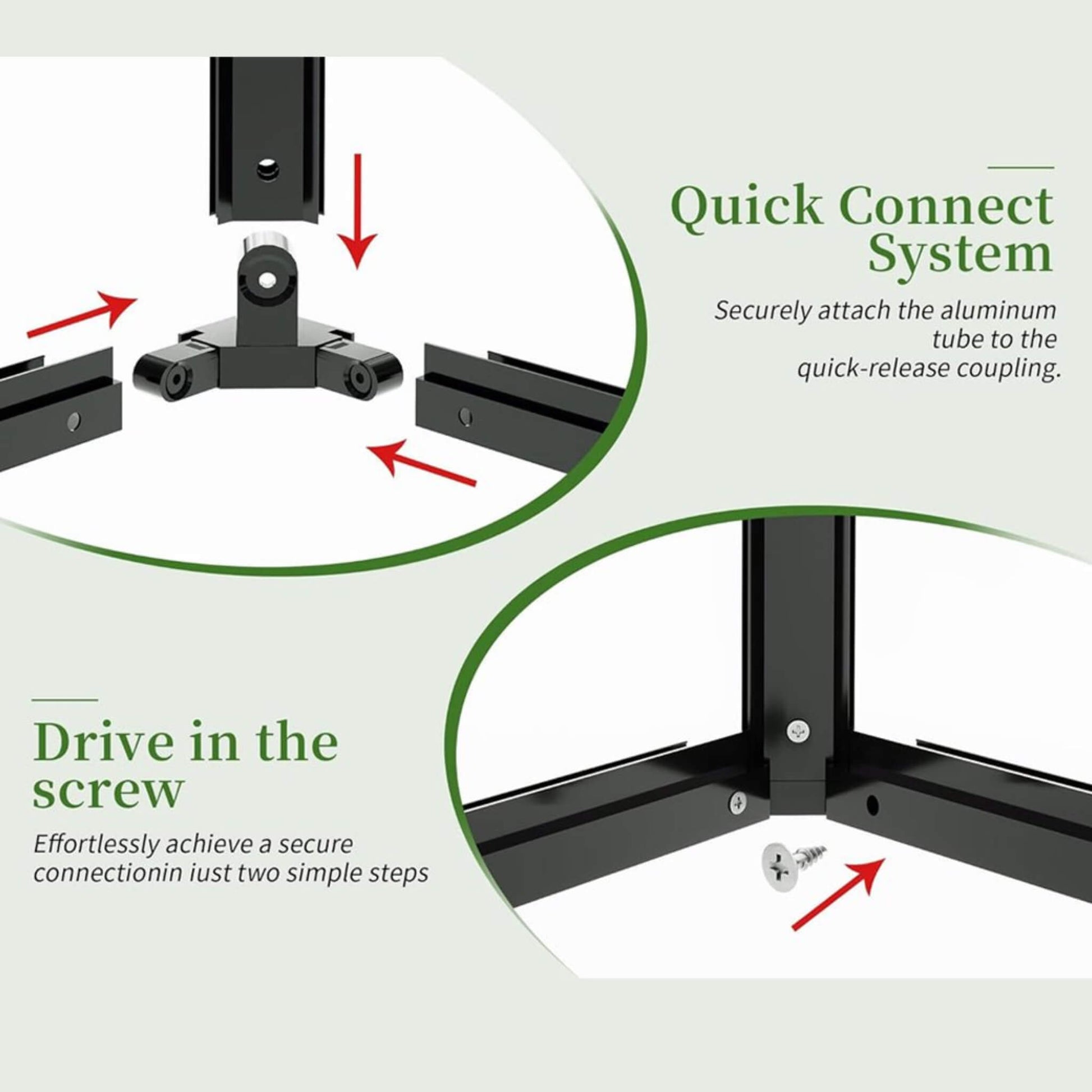 Experience the future of greenhouse gardening with this Premium Extra Large Outdoor Aluminum Polycarbonate Greenhouse. This state-of-the-art kit is specially designed to make assembly a breeze, allowing even the most discerning garden enthusiasts to have it up and running in just 5 hours. Say goodbye to frustrating setups and hello to our patented Quick Connect technology that saves you a remarkable 50% of assembly time. With a simple push and locking screw, our Quick Connect ensures a secure and swift link-up, revolutionizing greenhouse connectivity. But this greenhouse is not just about convenience, it's about providing the ultimate environment for your plants to thrive.