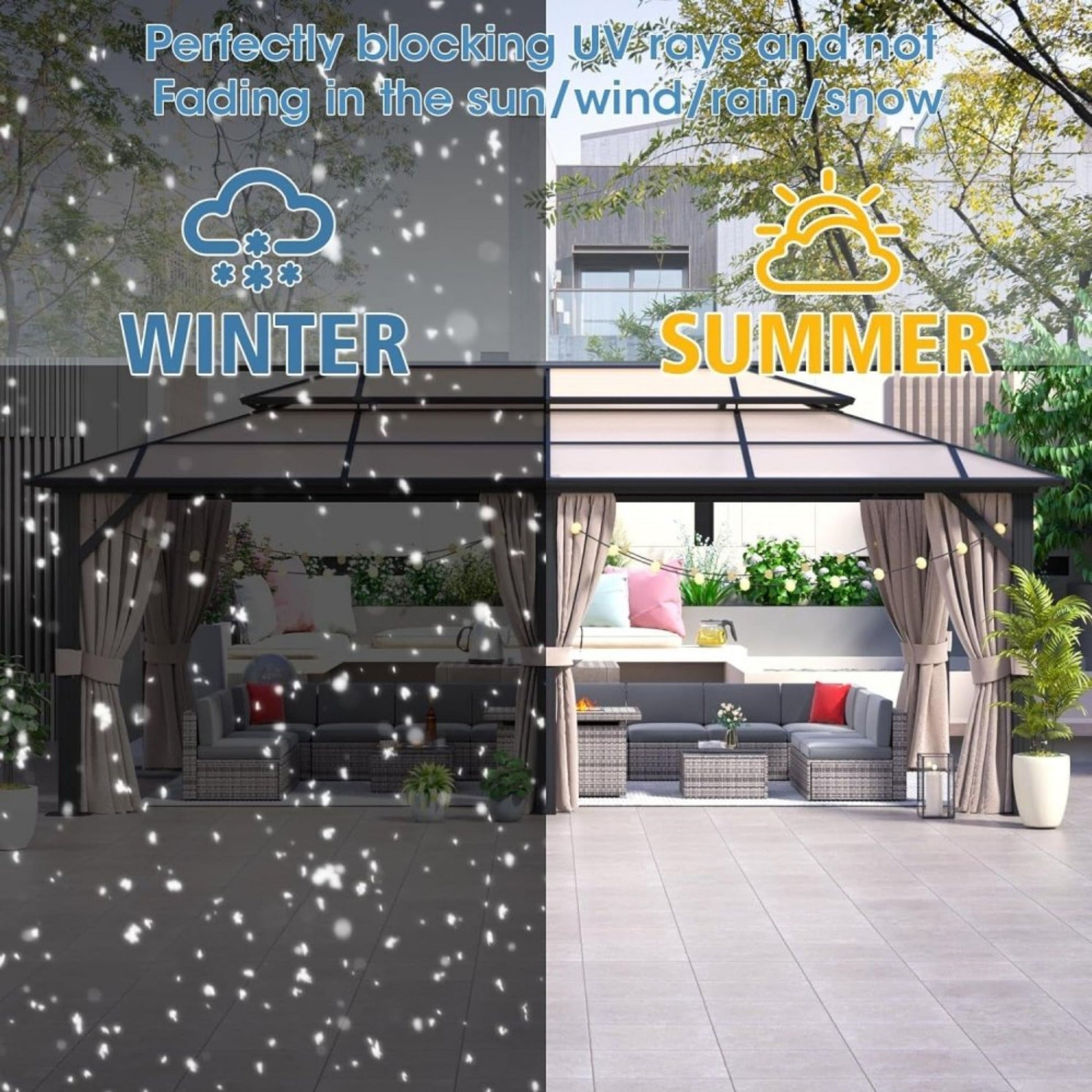 Elevate your outdoor living space with the AXN Premium Aluminum Hardtop Gazebo, a masterful blend of durability, style, and comfort. Designed to enhance your patio, garden, or backyard, this gazebo is the perfect sanctuary for anyone looking to create a picturesque outdoor retreat for large gatherings, dining, or simply unwinding in the beauty of nature.