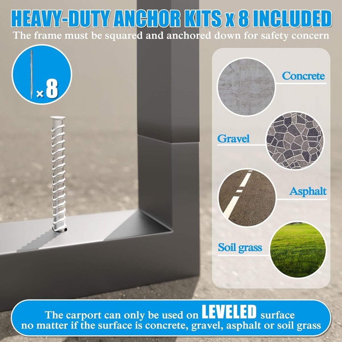 Join the ranks of satisfied customers who have experienced the difference that a high-quality carport can make. With this carport, you're not just purchasing a product - you're investing in peace of mind and the ultimate convenience. Don't settle for anything less than the best. Choose the Premium Heavy Duty Outdoor Canopy Garage Shelter today and experience the difference for yourself.