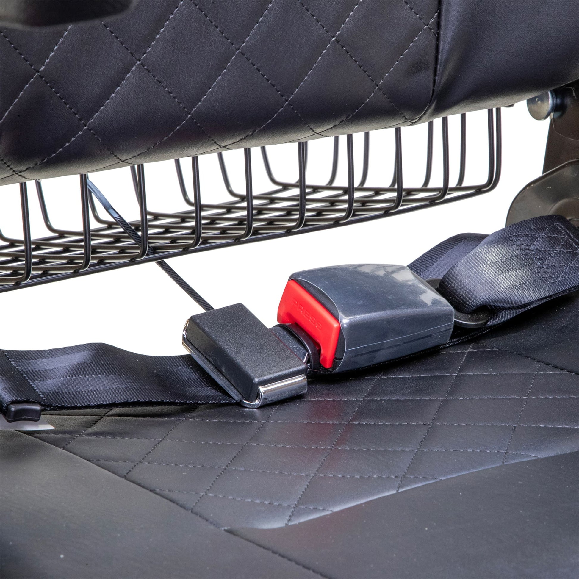 - Designed for all-day comfort, the diamond-stitched, fully adjustable seat with a headrest offers maximum support. Suspension springs on each wheel and durable tubeless tires provide a smooth, stable ride on any surface.