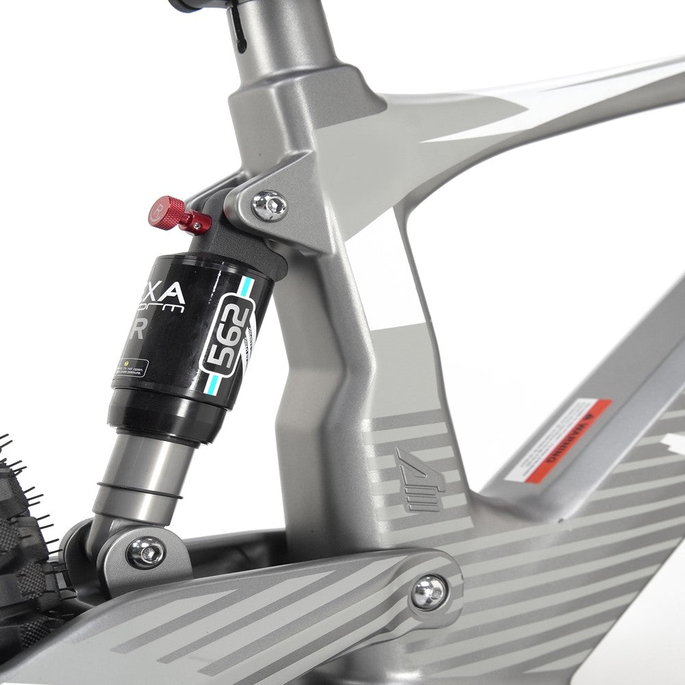 - The adjustable hydraulic rear shock with lockout feature absorbs shocks and vibrations, enhancing stability and comfort on rugged trails.