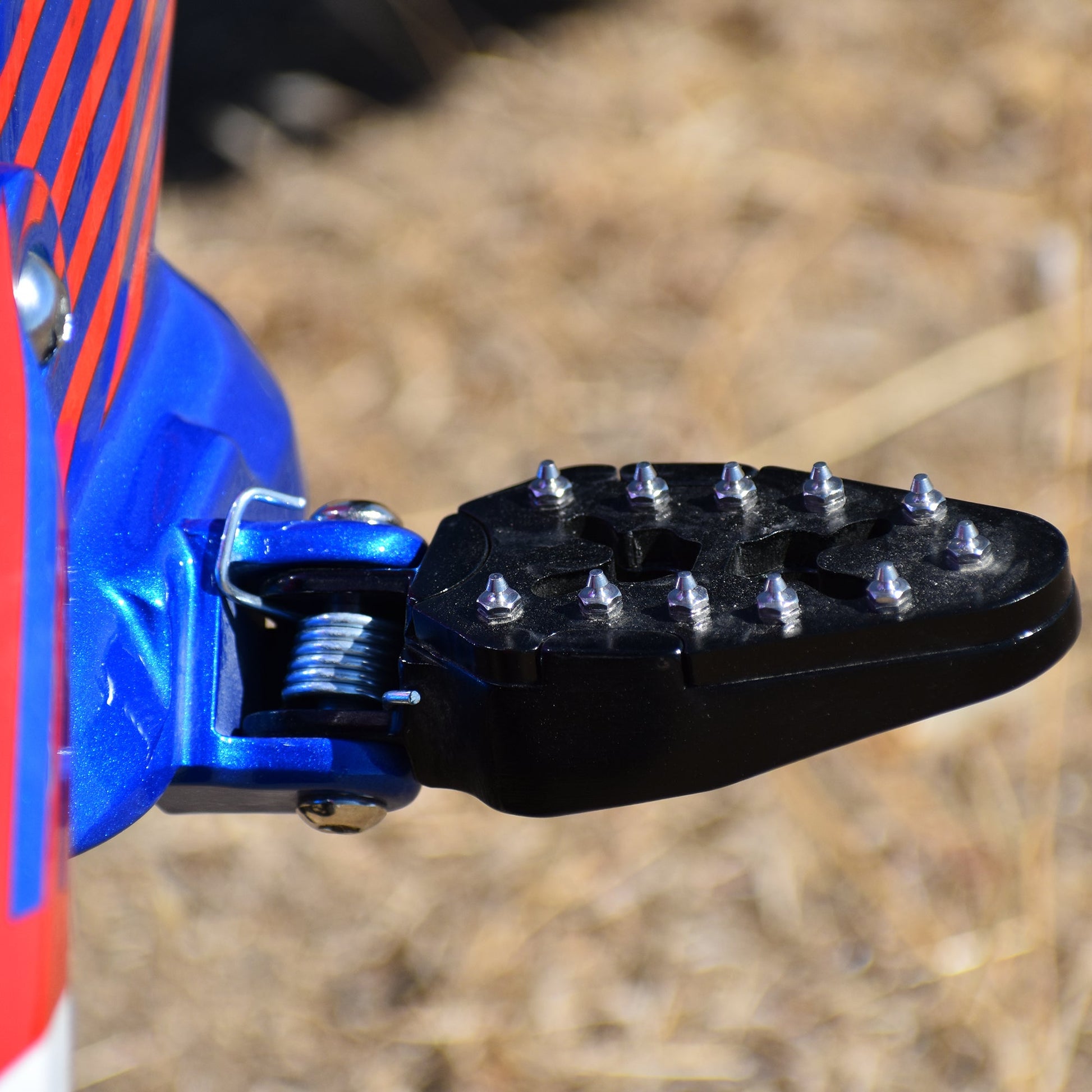 - The adjustable hydraulic rear shock with lockout feature absorbs shocks and vibrations, enhancing stability and comfort on rugged trails.